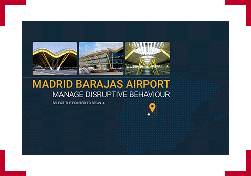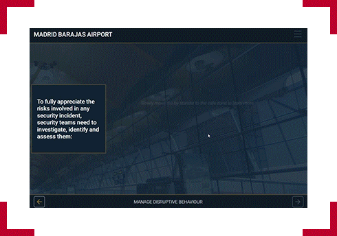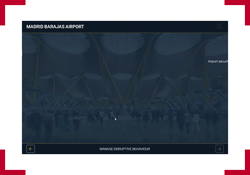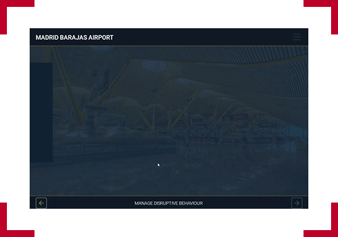Designer notes:For the user to begin the module, they will have to select the floating pin. A small transition with a plane flying through will occur the pin has been selected. As each topic of the module is selected, the background and topic preview image will change accordingly.